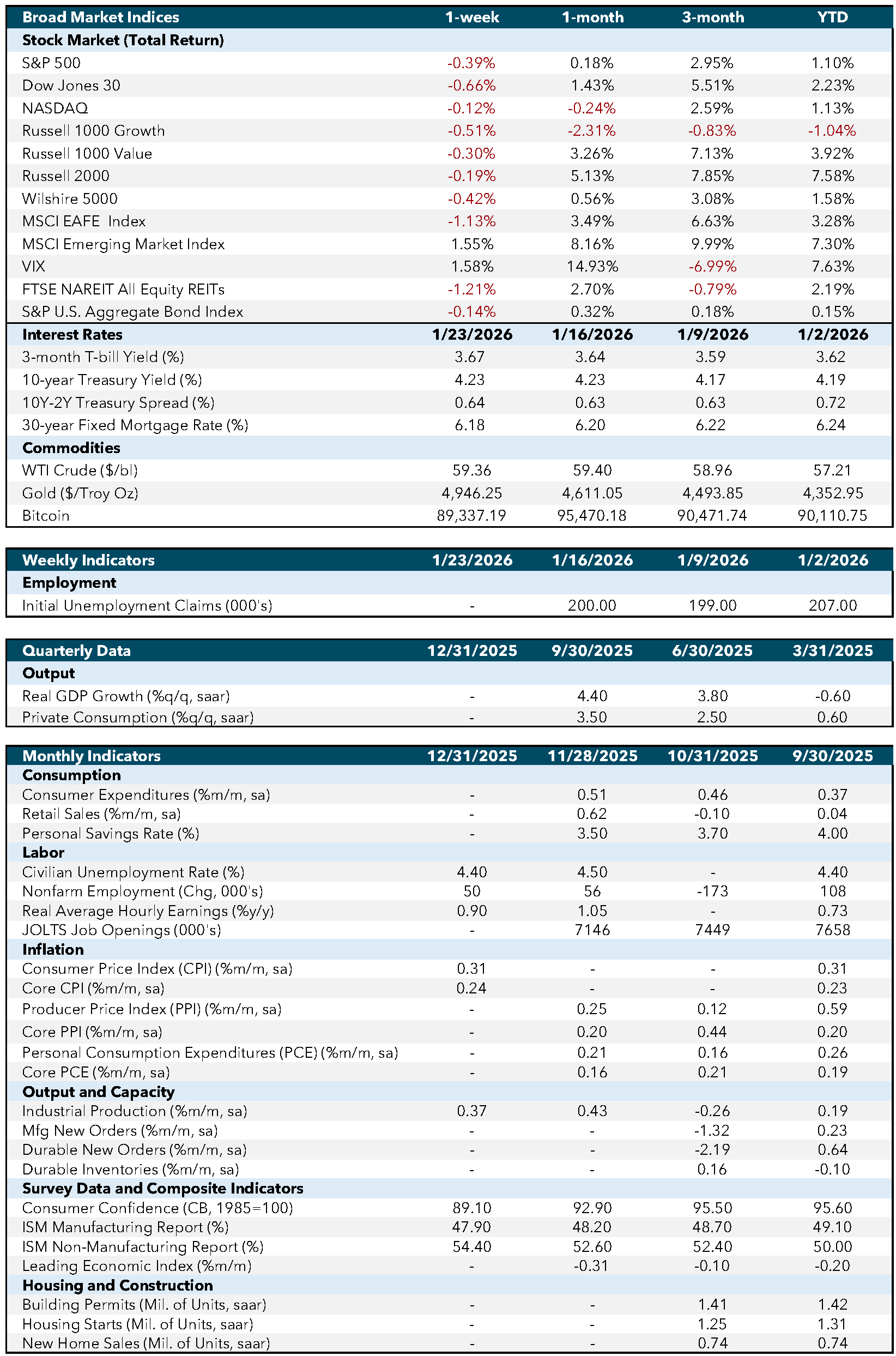 Economic data released this week continued to show a U.S. economy growing at a steady, though gradually moderating, pace. Real gross domestic product (GDP) for the most recent quarter was revised higher to an annualized 4.4%, reflecting strong consumer spending and resilient business investment. Personal consumption remained the primary contributor to growth, while government spending also provided support. Despite the strong backward-looking print, forward indicators suggest growth is likely to cool as restrictive monetary policy continues to work through the economy.